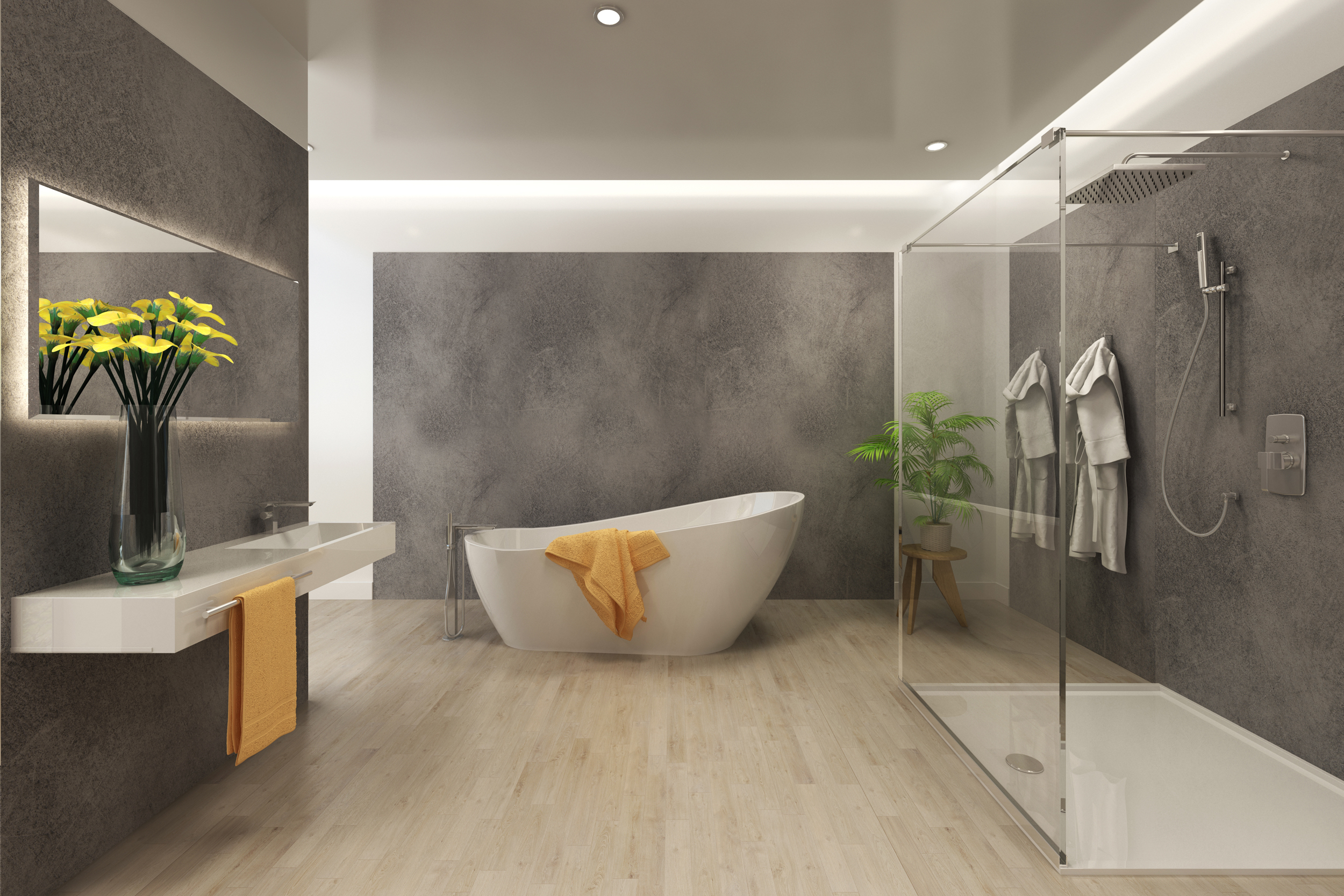 If you choose wet room wall panels, you won't have to deal with any grout. Skip the scrub brush and go for a sleek, easy-to-maintain wall instead.