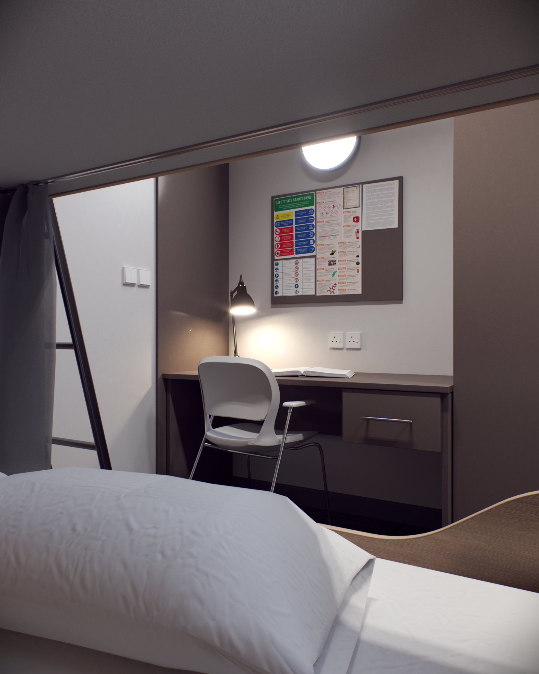 The basic package comprises all the essentials, including single or double bunk beds, a desk and a one or two door locker. This can be upgraded with optional extras, such as drawers, bunk shelves, bunk bed ladders, grab bags and décor gables. All components are fully compliant with relevant industry regulations, including NORSOK standards.